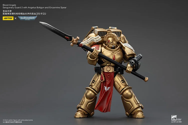 - Los Sanguinary Guard no son simples guerreros, sino la encarnación de la gloria dorada de los Blood Angels. Además, representan en su forma más pura la herencia de Baal. Con el Angelus Boltgun y la Encarmine Spear, acompañados por la armadura dorada que refleja la luz del Capítulo, esta figura de JoyToy en escala 1/18 trasciende el concepto de coleccionable. Así, se convierte en un fragmento vivo de la leyenda.