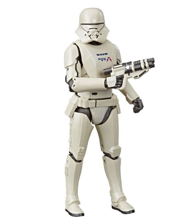 Hasbro presenta dentro de su colección Black Series esta exclusiva con pack versión Carbonized. Se trata del Jet Trooper, tal y como aparece en el próximo Episodio 9 de la saga Star Wars. Se trata de una figura articulada de unos 19 cm de alto. Incluye como complementos una pistola blaster.