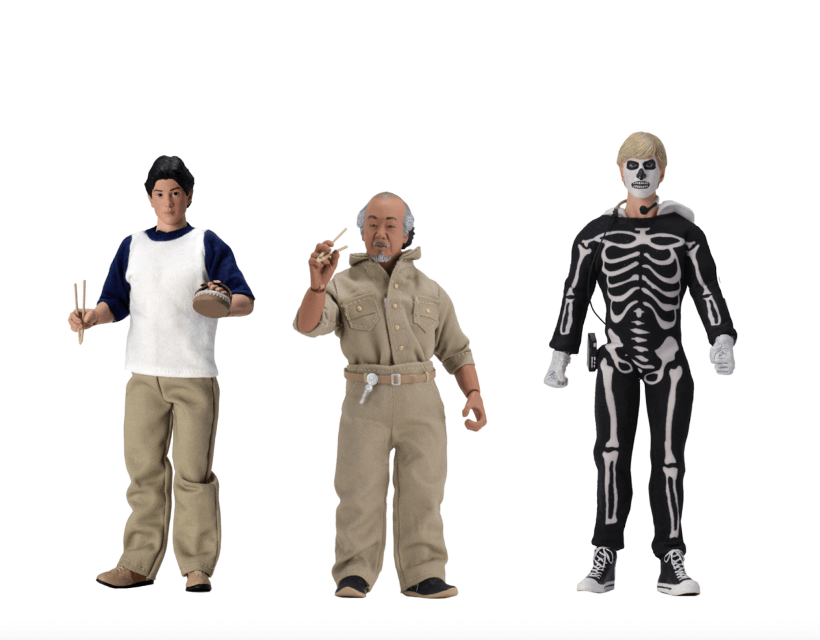 Neca presenta esta figura de Mr. Miyagi, basada en la icónica película de los 80 «Karate Kid» y anunciada en la San Diego Comic Con 2018. Mide unos 20 cm y viste ropa real. La figura viene con un bonsai y una mano alternativa sosteniendo unos palillos.
