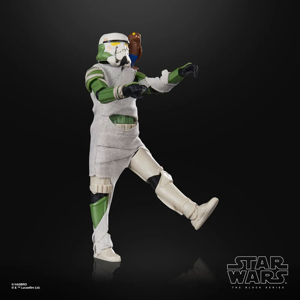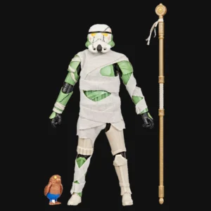 Inspirada en los Night Troopers que aparecen en Ahsoka, esta versión momificada incorpora vendas deshilachadas y una paleta cromática entre el hueso y el bronce envejecido, que evoca antiguos rituales Sith o experimentos de nigromancia imperial. El resultado es una estética impactante que combina lo ceremonial con lo siniestro. El acabado visual, reforzado por un diseño exclusivo de Halloween, marca la diferencia frente a cualquier otra tropa de asalto de tu colección.