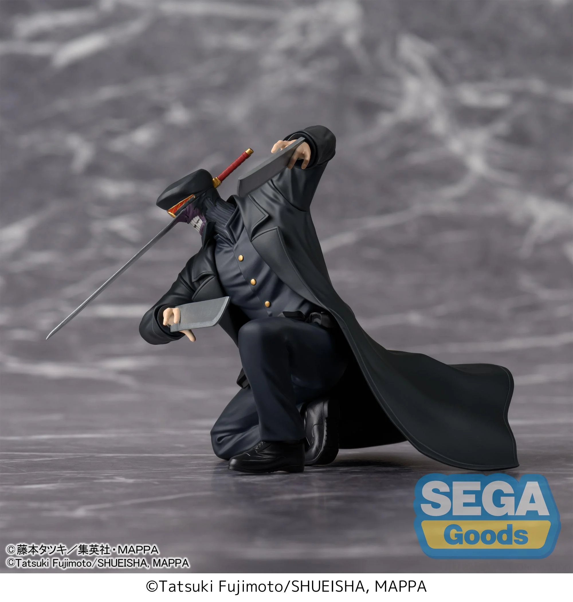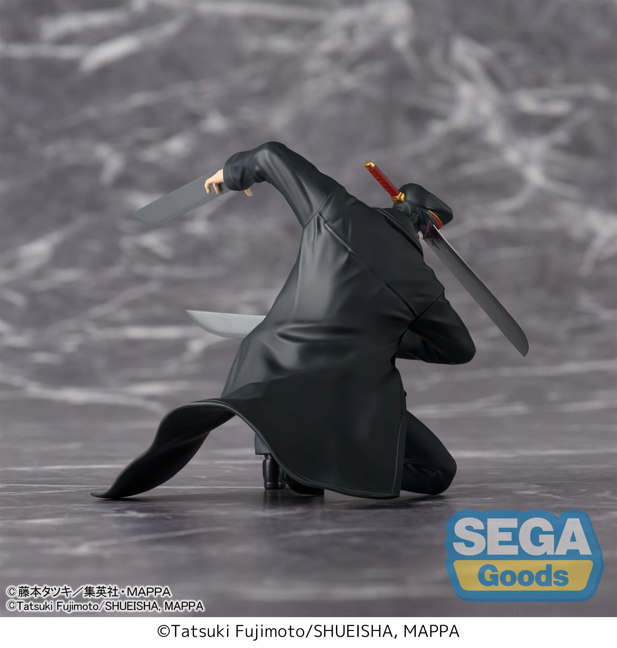 Samurai Sword Chainsaw Man PM Perching captura al antagonista en uno de sus momentos más inquietantes: quieto, con la violencia contenida a punto de estallar. La escena transmite tensión pura, como si el combate fuese a reanudarse en cualquier segundo, congelando al personaje en un instante previo al impacto. No hay heroísmo ni pose triunfal, solo amenaza latente.