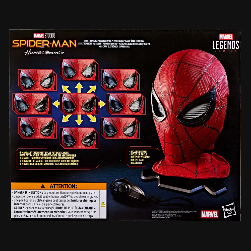 - Inspirada directamente en Spider-Man: Homecoming, esta Spider-Man Electronic Expressive Mask es mucho más que una simple réplica. Es el resultado de años de evolución en las líneas de roleplay de Marvel Legends, y representa la primera vez que una máscara del trepamuros combina fidelidad cinematográfica con funciones electrónicas avanzadas. Desde el diseño exterior hasta su interior ajustable, esta pieza ha sido creada para coleccionistas exigentes, cosplayers apasionados y fans que quieren vivir la experiencia completa de ser Peter Parker.