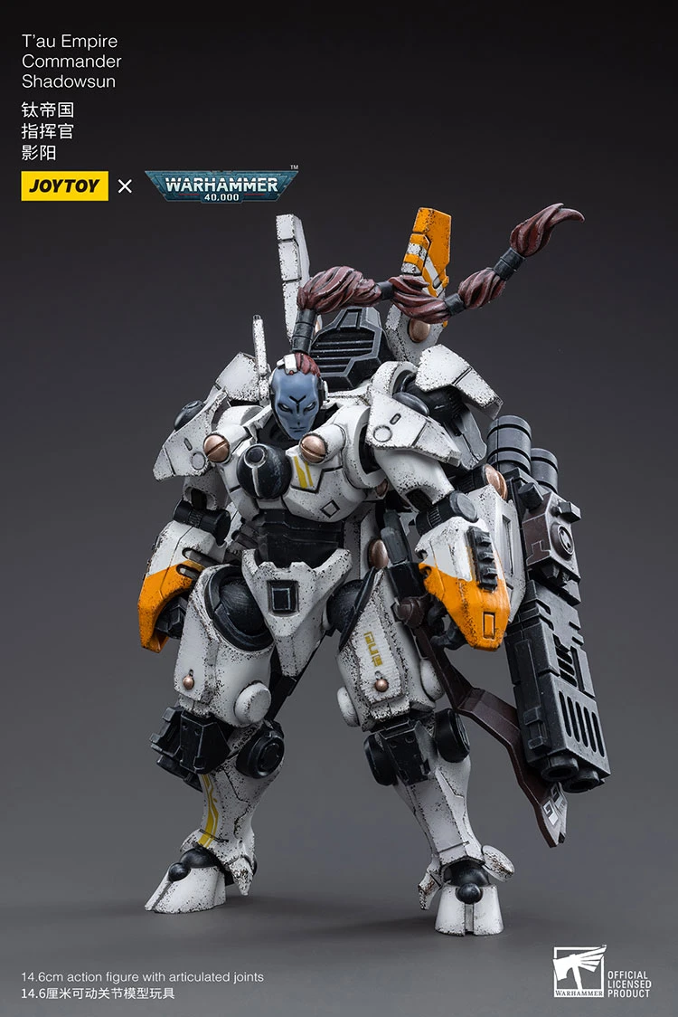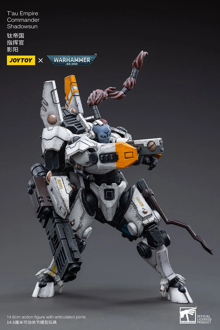 - T’au Empire Commander Shadowsun Warhammer 40K encarna el rostro de la estrategia y la precisión quirúrgica en un universo gobernado por el caos. En esta edición de JoyToy, la legendaria comandante se presenta en escala 1/18 con una altura de 14,6 cm, imponiéndose como una de las figuras más espectaculares de la línea. T’au Empire Commander Shadowsun es la heroína de la Tercera Esfera de Expansión, discípula de Puretide y maestra absoluta del Kauyon (El Cazador Paciente). Su figura refleja la paradoja del Imperio T’au. Proclama unidad bajo el Greater Good (Bien Supremo). Sin embargo, expande sus dominios con la crudeza de la guerra.