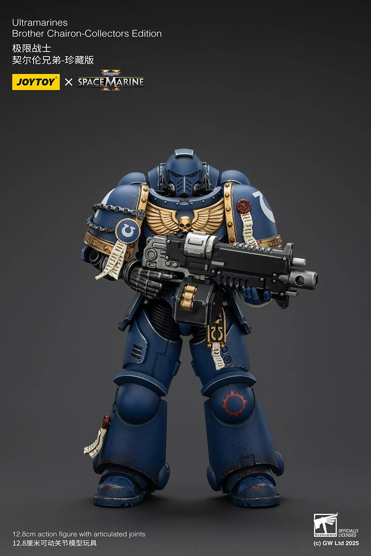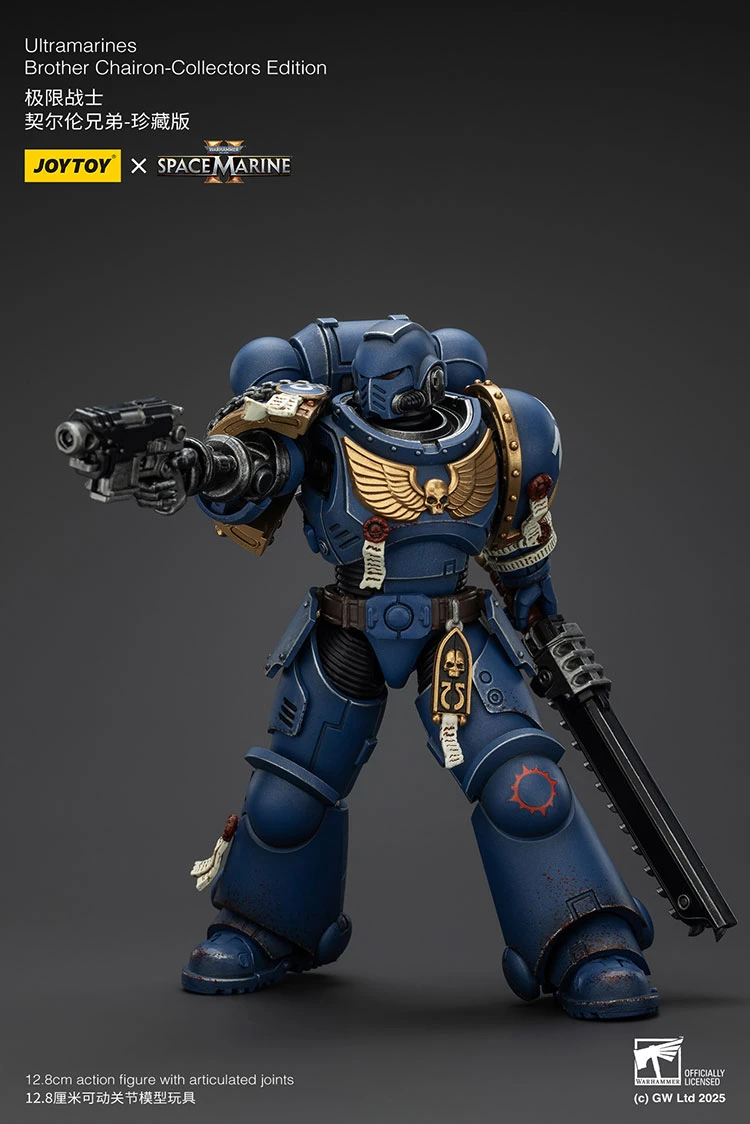 Antes de cerrar la vitrina, el coleccionista puede decidir cómo mostrarlo: casco iluminado o rostro descubierto, bolter en avance firme o chainsword lista para el asalto. En cualquiera de sus configuraciones, Ultramarines Brother Chairon Collectors Edition transmite siempre lo mismo: disciplina, resistencia y guerra sin concesiones.